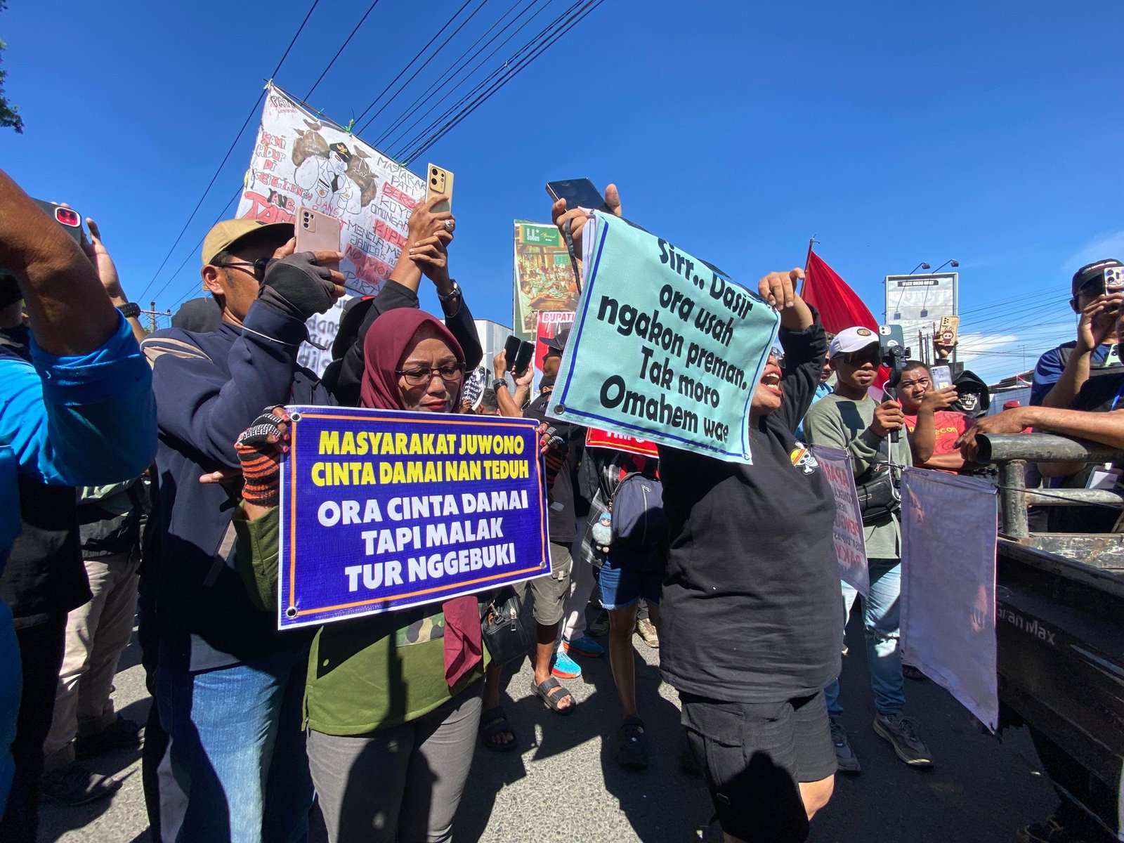 “Aksi damai kita lewat bunga mawar ini. Mawar ini harum, seperti Pati yang akan harum nantinya. Kita di sini melakukan aksi damai untuk menolak aksi premanisme,” ujar Ali Ahmadi di hadapan peserta aksi.