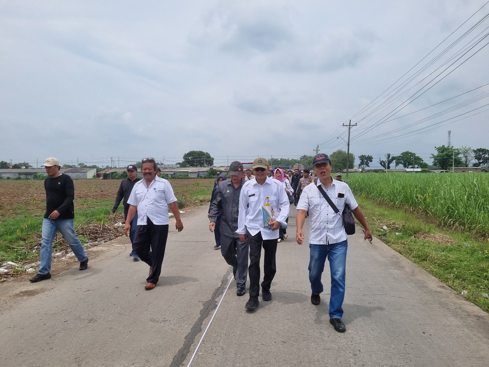 Sekitar satu jam kemudian, rombongan PN Pati bersama ATR/BPN tiba di lokasi. Begitu turun dari kendaraan, tim langsung bergerak menuju ruas jalan yang disengketakan. Meteran bentang, patok, dan peta dikeluarkan untuk memastikan koordinat titik per titik yang dipersoalkan dua desa tersebut.