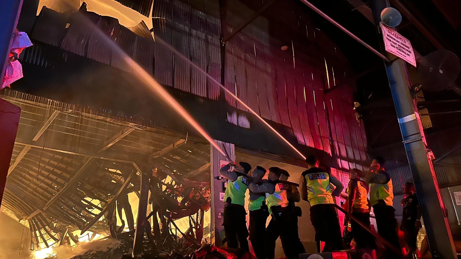 “Begitu menerima laporan 110, tim Pamapta langsung meluncur dan menemukan api sudah besar di bagian bawah gudang,” ujarnya.