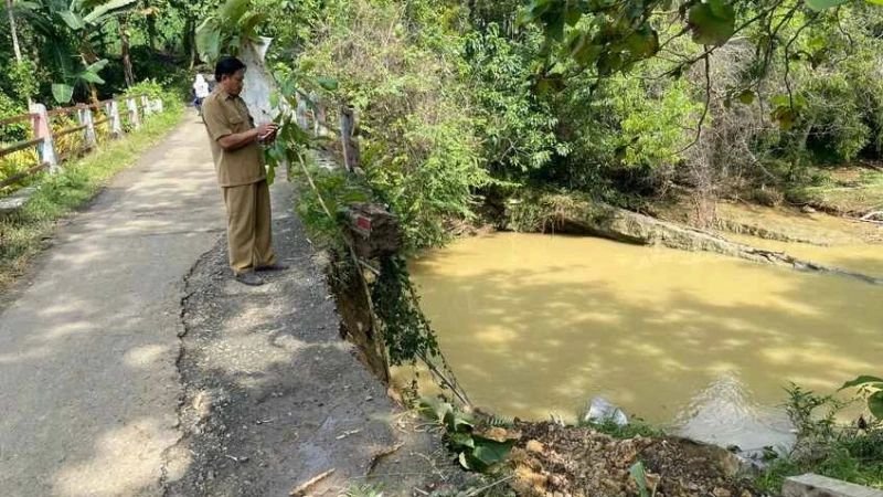 “Waktu magrib hujan sangat deras. Tidak lama kemudian, jalan dan sayap jembatan ambrol. Sebelumnya memang sudah retak dan sempat diperbaiki, tapi tidak mampu menahan derasnya aliran air,” ujarnya.