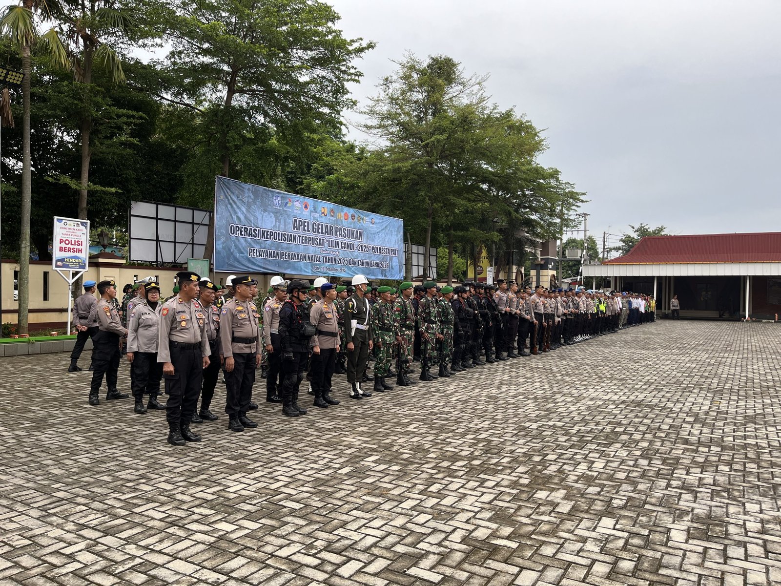 PATI – Menjelang perayaan Natal 2025 dan Tahun Baru (Nataru) 2026, Polresta Pati memastikan kesiapan penuh aparat keamanan melalui Apel Gelar Pasukan Operasi Lilin Candi 2025 yang digelar di halaman Mapolresta Pati, Jumat (19/12/2025).