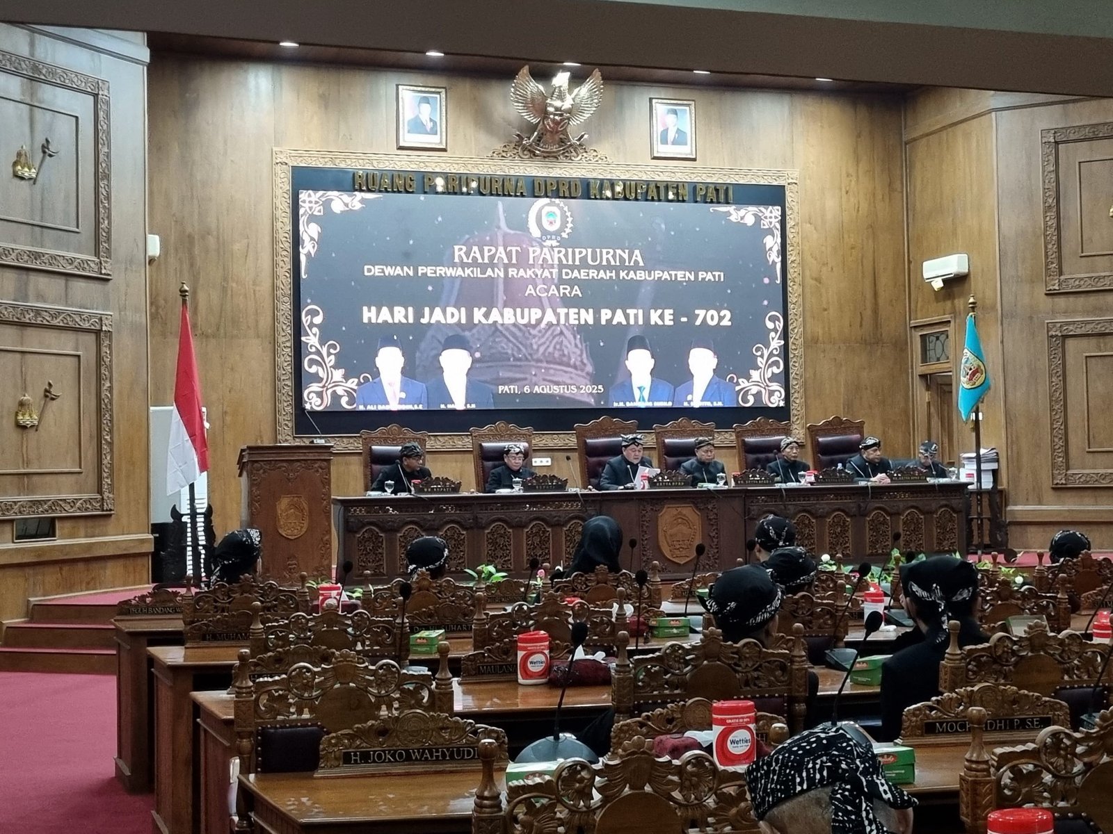 PATI, suarakabar.co.id – Dewan Perwakilan Rakyat Daerah (DPRD) Kabupaten Pati menggelar Rapat Paripurna dalam rangka memperingati Hari Jadi Kabupaten Pati yang ke-702, Rabu malam (6/8/2025). Sebanyak 42 anggota DPRD hadir dalam rapat yang dimulai pada pukul 20.44 WIB dan terbuka untuk umum tersebut.
