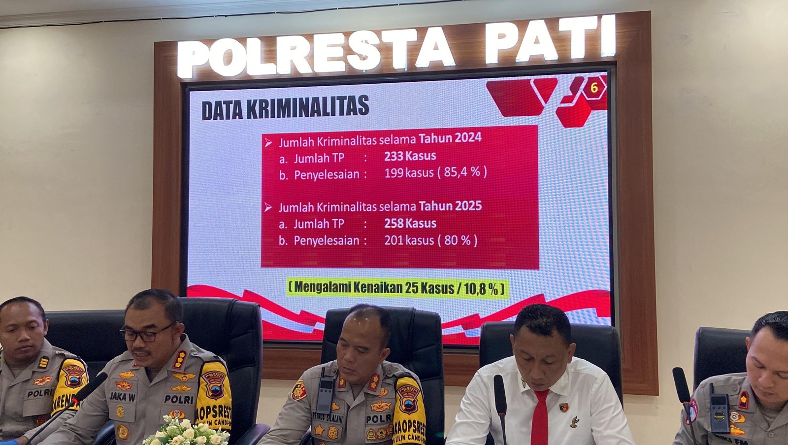 Ia menjelaskan, total kasus tindak pidana yang ditangani Polresta Pati sepanjang 2025 mencapai 258 kasus. Dari jumlah tersebut, sebanyak 201 kasus berhasil diselesaikan atau sekitar 80 persen.
