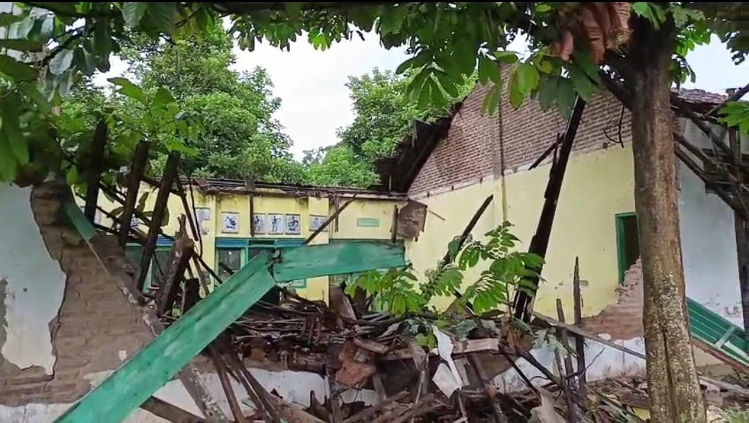 “Rabu kemarin sekitar pukul 13.00 WIB gedung kami ambrol akibat curah hujan tinggi dan angin kencang. Ada tiga ruang kelas, gudang, dan kantin bangunan lama yang rusak parah,” ungkap Prihadi.